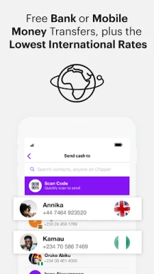 Enjoy free local transfers and the lowest cross-border rates with Chipper Cash, a cross-border payments app, where over 4 million people send & receive money in and between Nigeria 🇳🇬, Kenya 🇰🇪, South Africa 🇿🇦, United States of America 🇺🇸, Ghana 🇬🇭, Uganda 🇺🇬, Rwanda 🇷🇼, and UK 🇬🇧.
