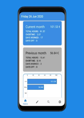 Caution: When first logged in the application, user must put in the normal working hours,the money per hour worked and the money per extra hour.