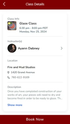 Download the app to view schedules & book sessions at Fire and Mud Studios!
