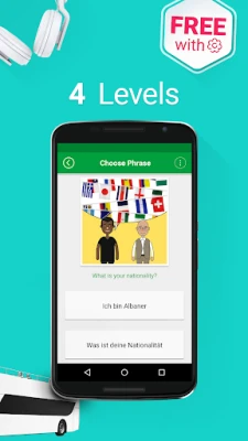 Fun Easy Learn has developed many applications to help people around the world learn foreign languages for free. Fun Easy Learn applications improve your German skills: speaking, listening and grammar. The dictionary of the apps has human voice pronunciation for each common phrase to improve your speaking skill.